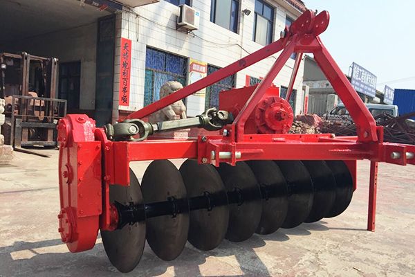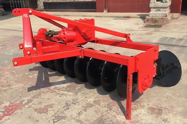 驅動圓盤犁采用拖拉機后三點懸掛機構進行掛接,機具在工作過程中通過拖拉機后動力輸出軸(PTO)將動力傳遞到圓盤犁齒輪箱中,來驅動圓盤犁進行旋轉。該驅動圓盤犁主要適用于水田耕作,具有不纏草,作業質量高,工作效率高的特點。